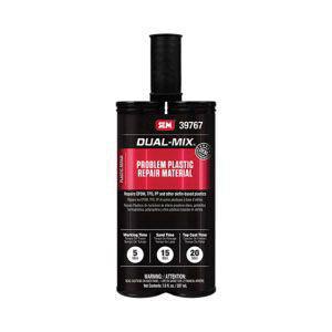 Dual-Mix™ problem plastic repair material is a two component epoxy based filler for repairing olefin-based plastics and similar rigid and semi-rigid substrates.