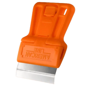 Pocket-size, plastic glass scraper with 1 single edge metal razor blade. Easily open or close with push button lock/unlock. Use for scraping, trimming and cutting. Sold Individually.